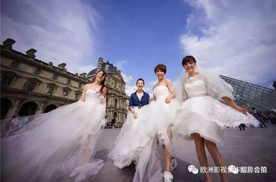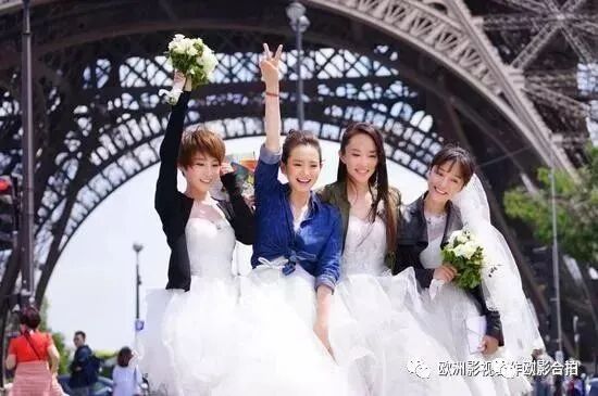女生组在铁塔前,卢浮宫广场完成任务